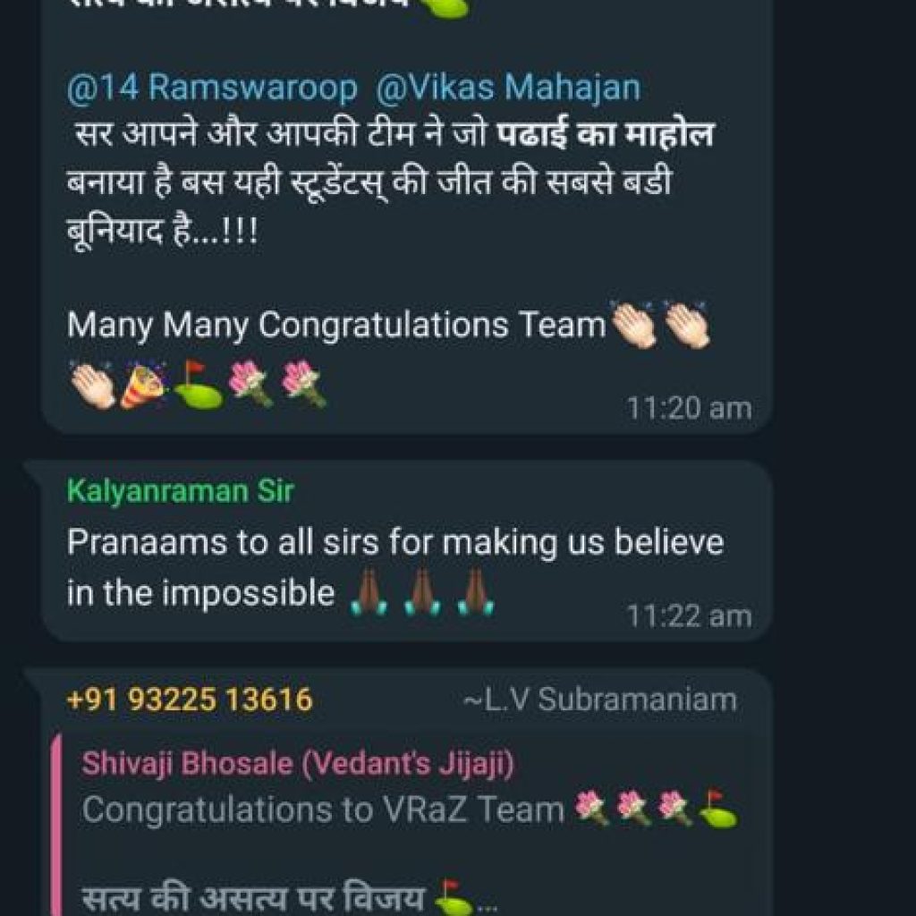 Parents & Student's Experience at VRaZ Academy Joyful Tears and Cheers STATEGIES TO CRACK COMPETITION EXAM (JEE & NEET) SHARED BY: LAY JAIN IIT-JEE 2018 AIR-09 Share on Facebook